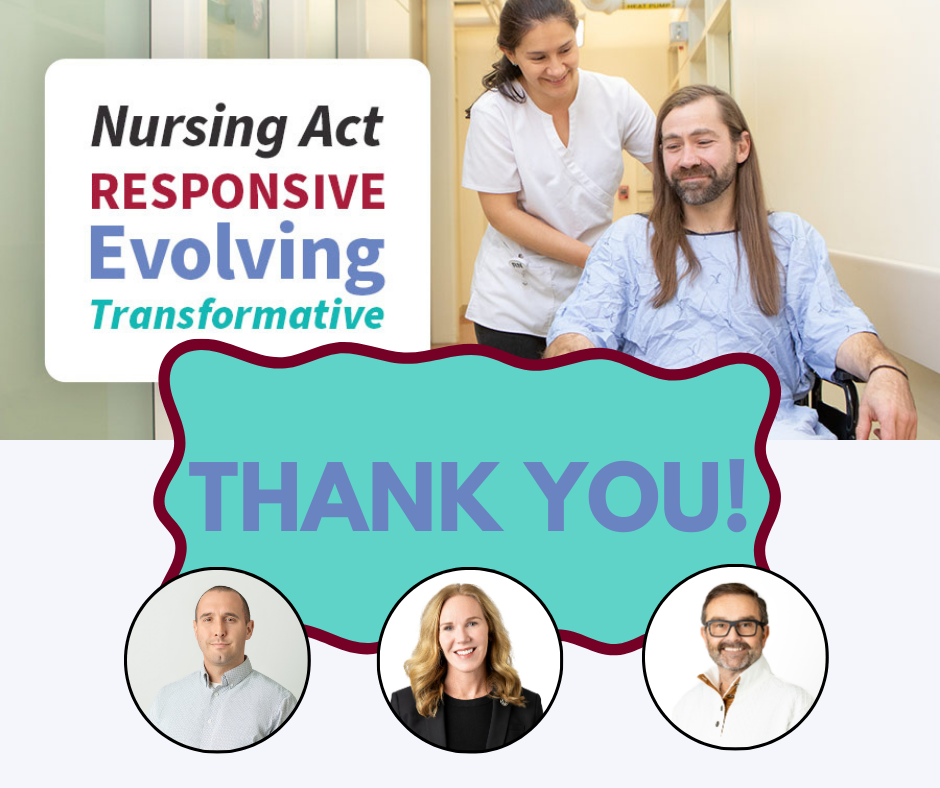 This has truly been a collective effort. Your voices have helped ensure the new Act reflects the realities of nursing today and supports public protection through safe and competent nursing practice.